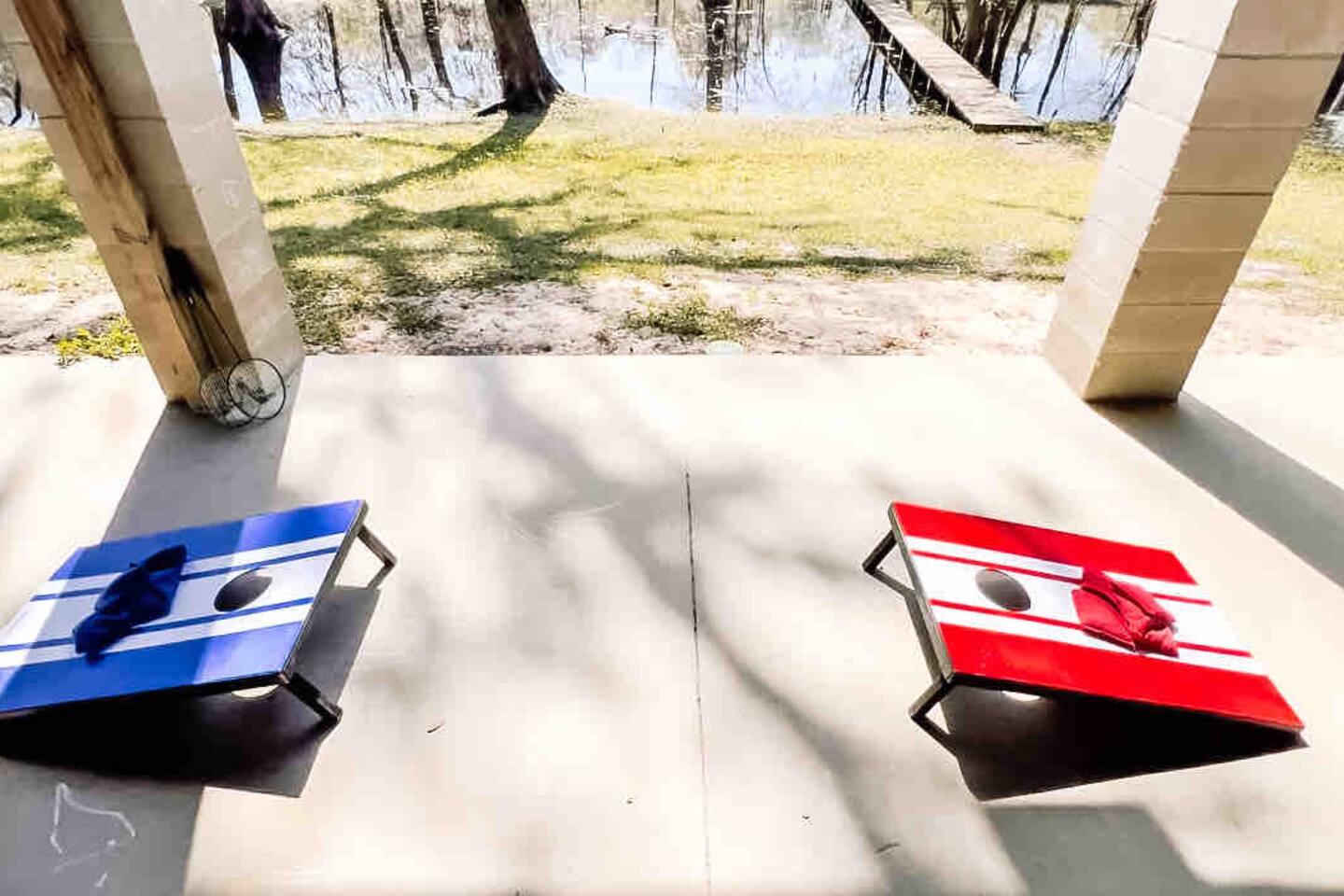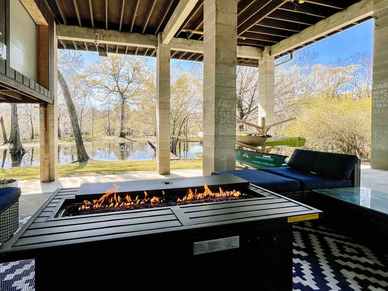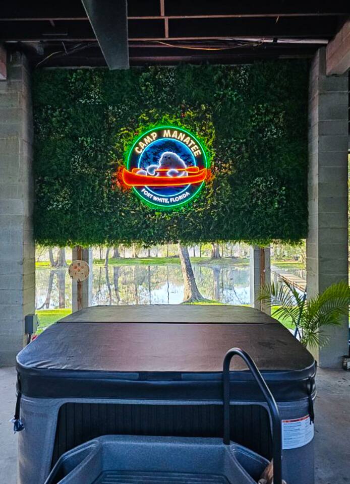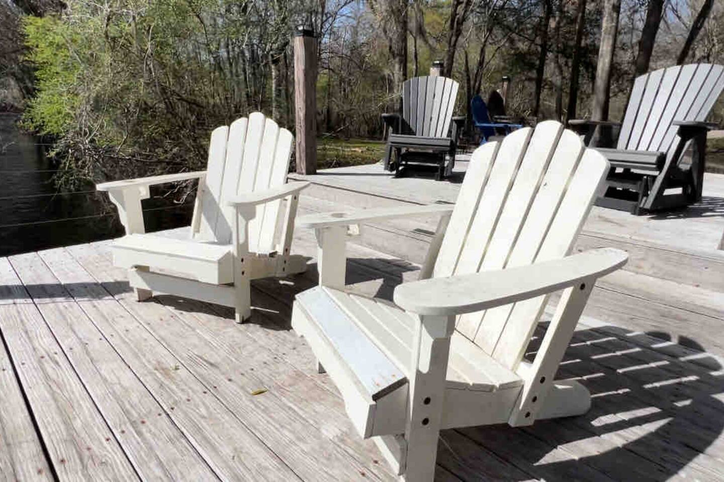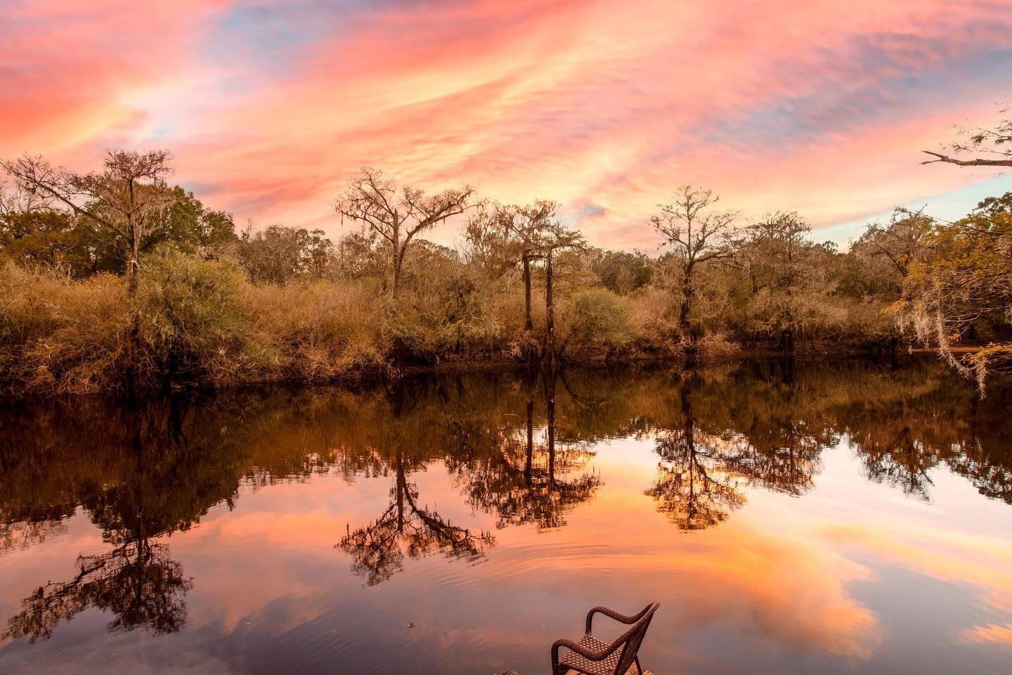 Camp Manatee is a stilt home with all the major indoor living areas upstairs (please note that you will need to climb up a flight of stairs to enter the house) There are three (3) spacious bedrooms, two (2) full bathrooms, and a fully equipped kitchen and dining table. The living area has comfortable leather couches with sliding glass doors across the entire river-facing wall. You are sure to catch some lovely river views along with a fully screened-in wraparound porch off the back of the home. There are four (4) TVs, all equipped with Roku streaming services for you to watch your favorite shows during your stay. Downstairs, there is an open-air recreation area with plenty of seating including a large lounge sectional plus table and chairs. There’s a hot tub, fire pit table, corn hole, and charcoal grill. Our property also features an additional 25 acres of vacant land adjacent to the property and just across the Santa Fe River is the Fort White Wildlife and Environmental Area that comprise another 1,600 acres of preserved lands. If you are looking to relax and get back in touch with nature, this is a must-visit spot for you!