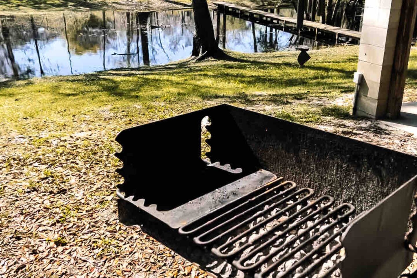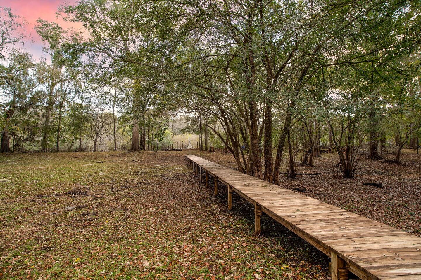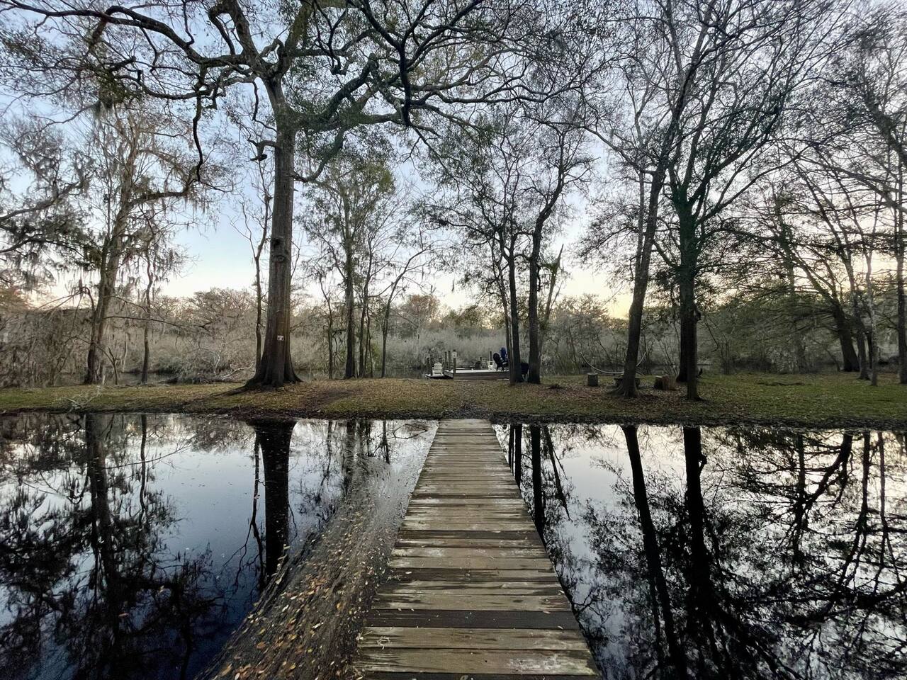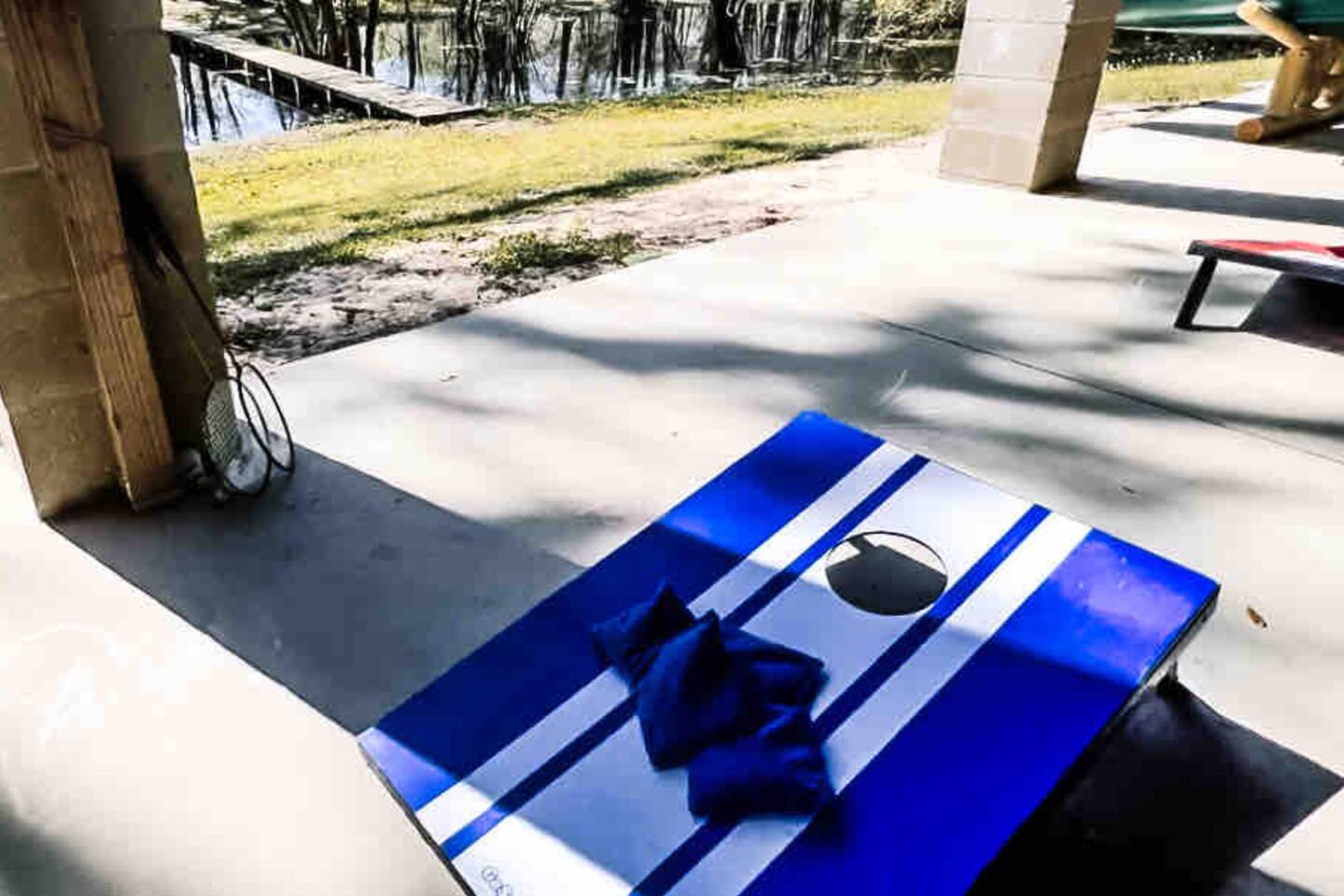 Camp Manatee is a stilt home with all the major indoor living areas upstairs (please note that you will need to climb up a flight of stairs to enter the house) There are three (3) spacious bedrooms, two (2) full bathrooms, and a fully equipped kitchen and dining table. The living area has comfortable leather couches with sliding glass doors across the entire river-facing wall. You are sure to catch some lovely river views along with a fully screened-in wraparound porch off the back of the home. There are four (4) TVs, all equipped with Roku streaming services for you to watch your favorite shows during your stay. Downstairs, there is an open-air recreation area with plenty of seating including a large lounge sectional plus table and chairs. There’s a hot tub, fire pit table, corn hole, and charcoal grill. Our property also features an additional 25 acres of vacant land adjacent to the property and just across the Santa Fe River is the Fort White Wildlife and Environmental Area that comprise another 1,600 acres of preserved lands. If you are looking to relax and get back in touch with nature, this is a must-visit spot for you!