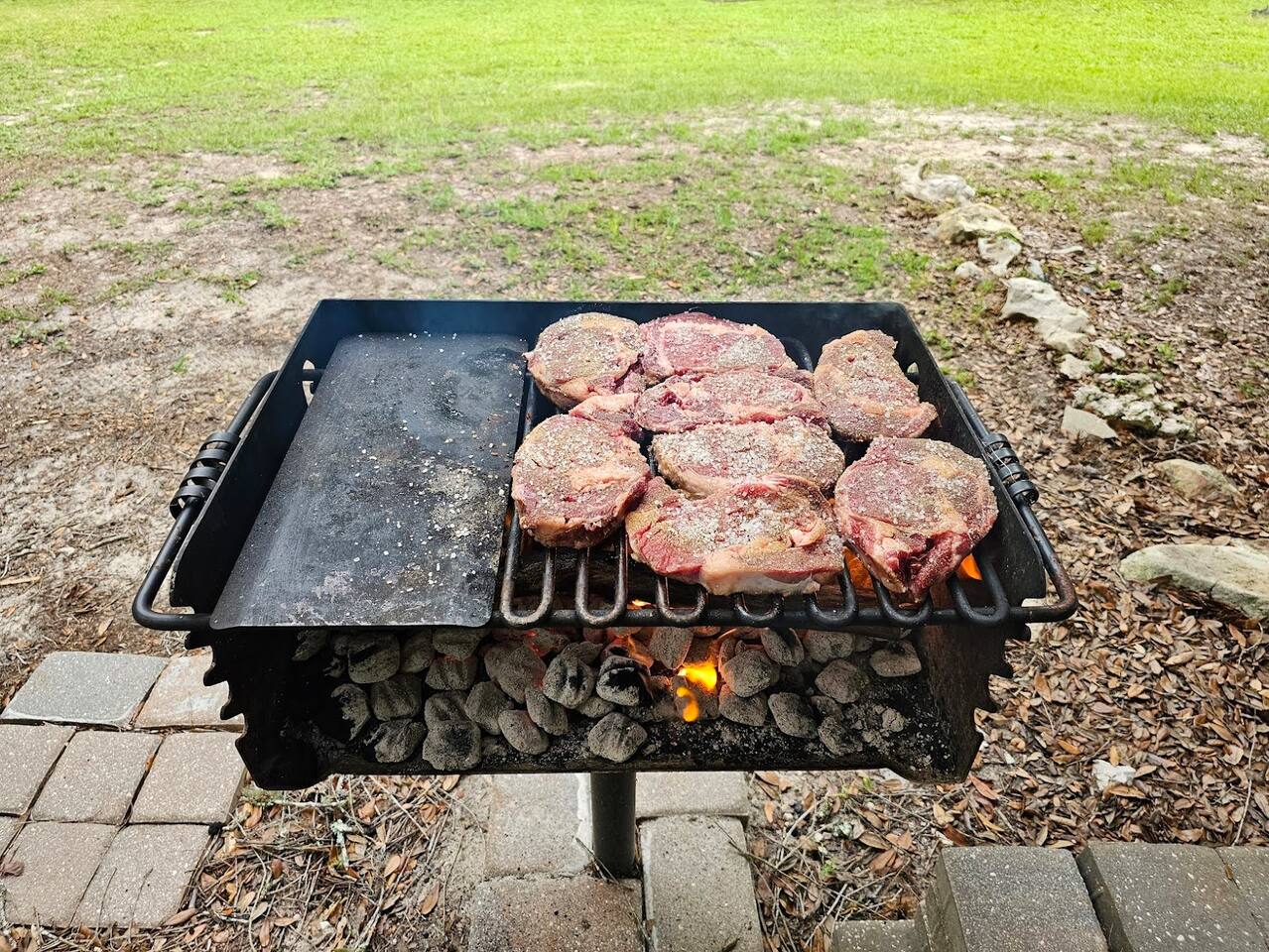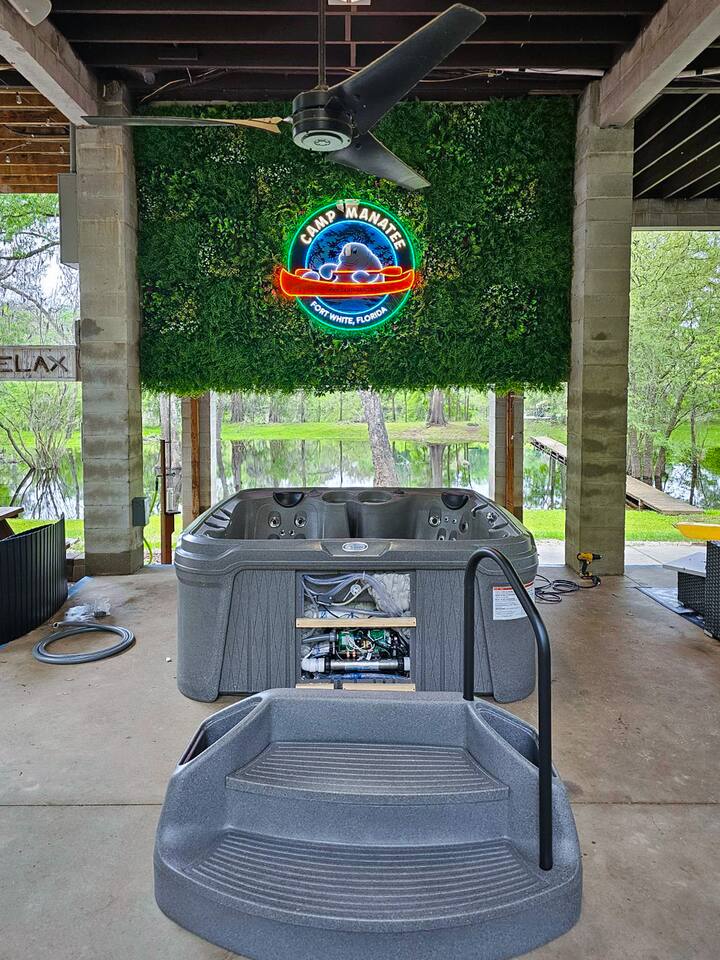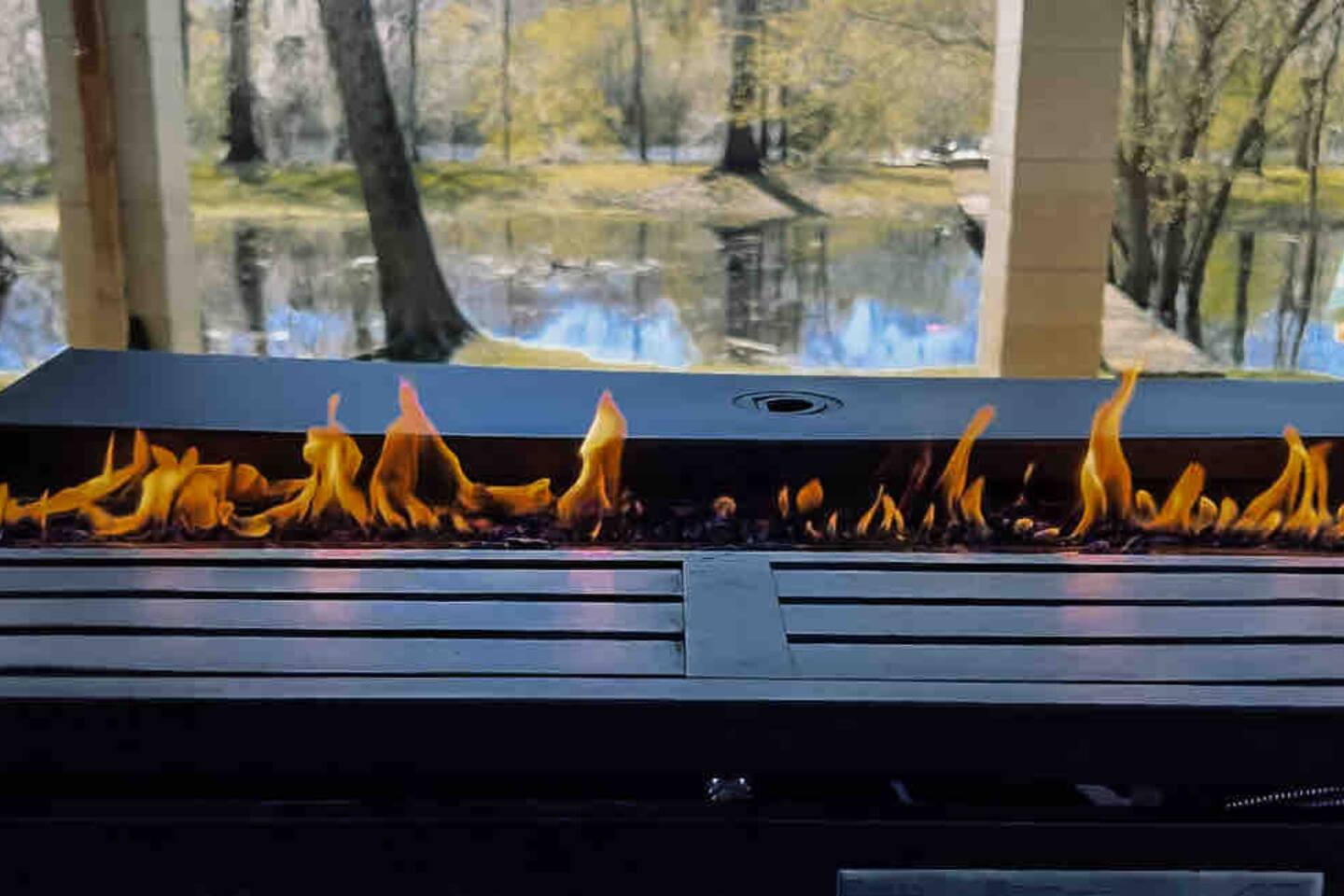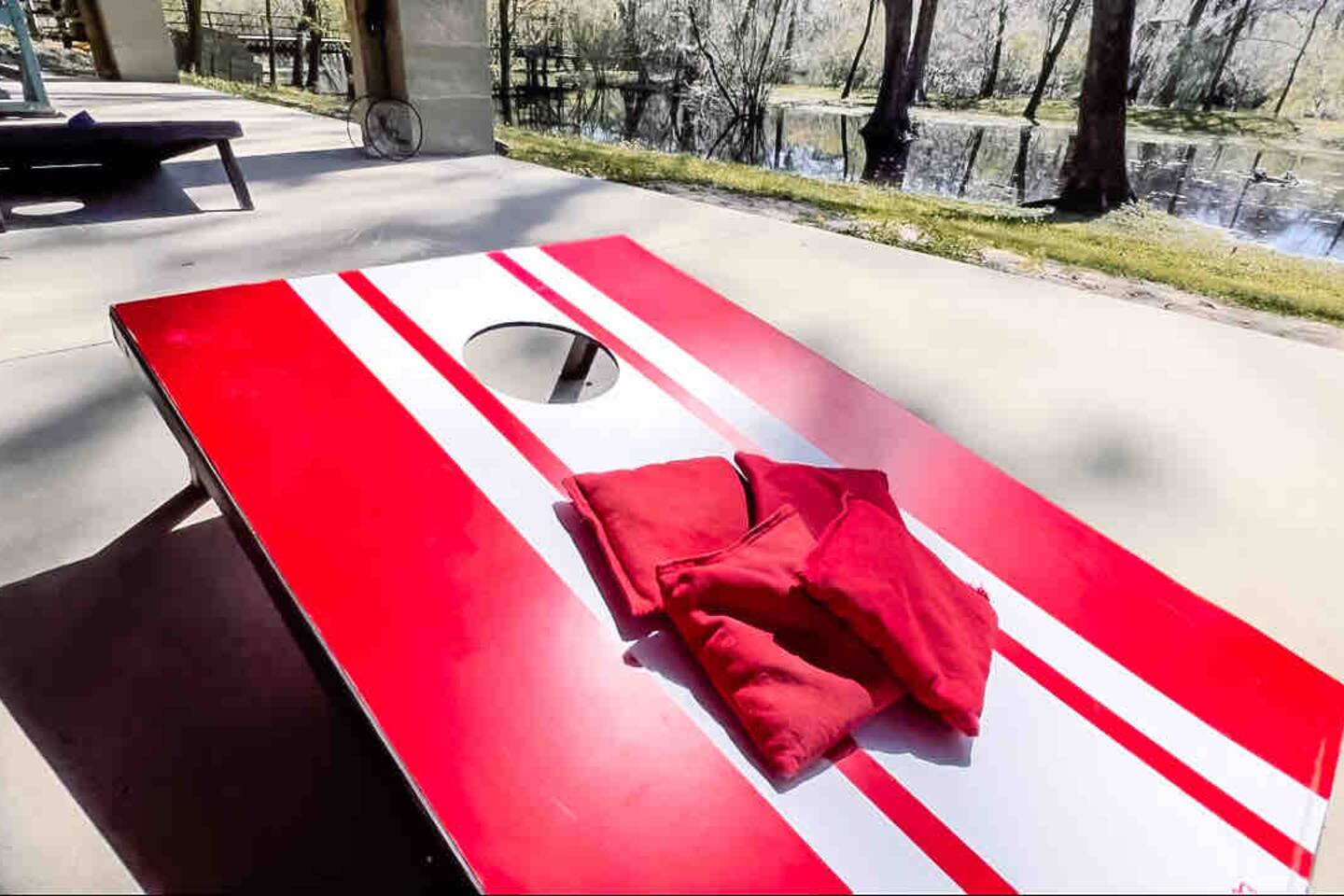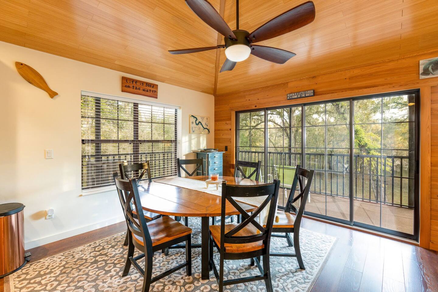 Camp Manatee is a stilt home with all the major indoor living areas upstairs (please note that you will need to climb up a flight of stairs to enter the house) There are three (3) spacious bedrooms, two (2) full bathrooms, and a fully equipped kitchen and dining table. The living area has comfortable leather couches with sliding glass doors across the entire river-facing wall. You are sure to catch some lovely river views along with a fully screened-in wraparound porch off the back of the home. There are four (4) TVs, all equipped with Roku streaming services for you to watch your favorite shows during your stay. Downstairs, there is an open-air recreation area with plenty of seating including a large lounge sectional plus table and chairs. There’s a hot tub, fire pit table, corn hole, and charcoal grill. Our property also features an additional 25 acres of vacant land adjacent to the property and just across the Santa Fe River is the Fort White Wildlife and Environmental Area that comprise another 1,600 acres of preserved lands. If you are looking to relax and get back in touch with nature, this is a must-visit spot for you!