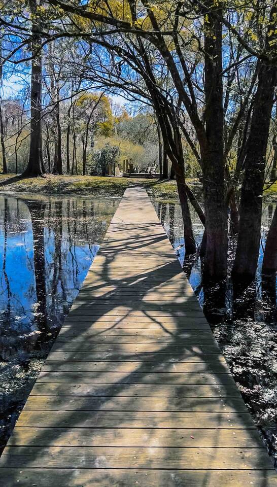 Camp Manatee is tucked into a quiet neighborhood in Fort White, Florida. A community built around the Santa Fe River, most homes are vacation homes of residents around Florida. There are dozens of springs and parks within a short distance from our home, including the magical Ichetucknee River within walking/kayaking distance. For guests bringing boats, jet skis, and other water toys - there are several public boat launches into the majestic Santa Fe or the historic Suwannee River in close proximity. There is also access to a private boat ramp within close proximity to the property. Inquire with us if you have interest in this amenity.