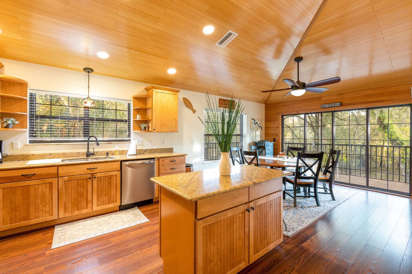 There is plenty of free parking onsite. Up to six (6) cars would be able to park in the driveway. Camp Manatee is gated. We ask that you please do not park on the grass as we have a septic system in the area. Guests have access to kayaks and paddles to use on the Santa Fe River which also provides access to private section of the Ichetucknee River via river. Guests that wish to have access to additional amenities such as private tubing access to the Ichetucknee River, boat ramp, parks and more that are all in close proximity to Camp Manatee should reach out to our team to learn more. PET POLICY: Our home is pet friendly with an additional pet fee. We permit a maximum of two (2) pets. EARLY CHECK-IN/LATE CHECK-OUT: Guests should know that we can sometimes accommodate early check-in times or later check-out times. Please message via the messaging system to inquire further. Sometimes an additional fee is required depending on how early/late your request time is and if we can guarantee it
